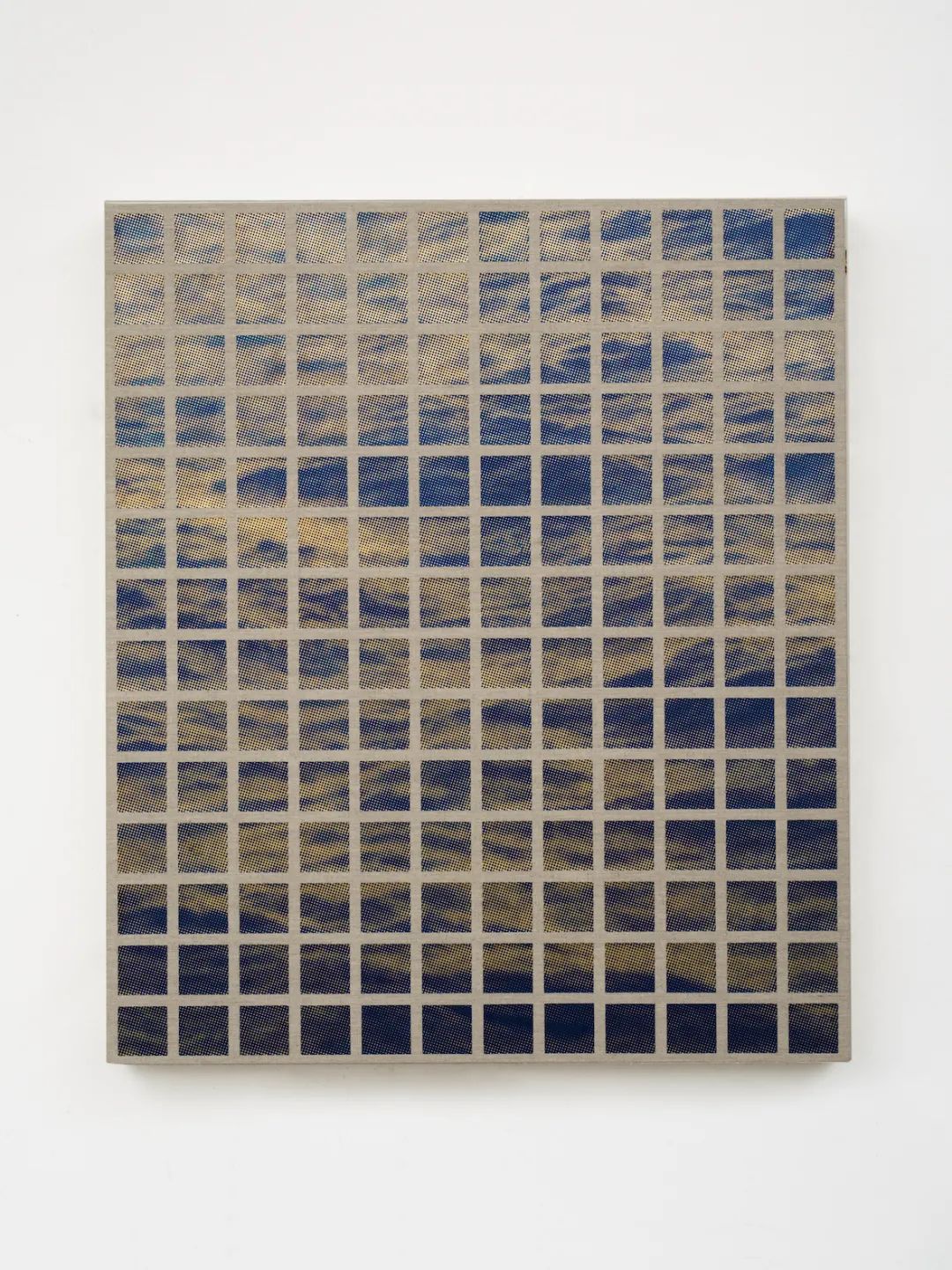 The poet Wang Zhenbai from the late Tang Dynasty once suggested the notion of time by the verses—“An inch of time is an inch of gold.” One inch on a side, all the squares foiled with gold are covered by the grainy and pixelated surface of the sea. The physical distance as measurable is applied to metaphorize the psychological distance as immeasurable.
