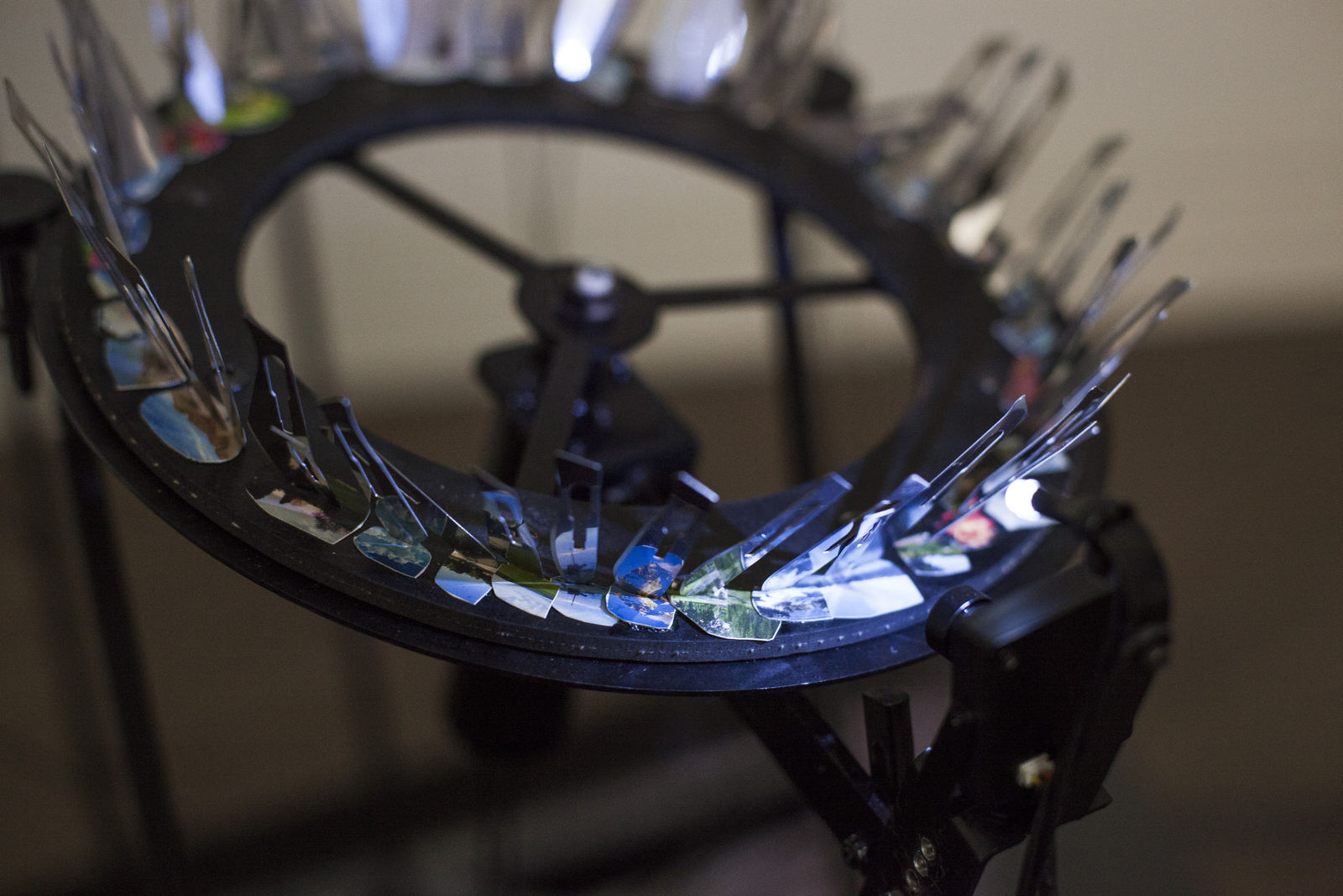 HU WeiyiPulp Landscape 4 低级景观4, 2015Camera, motor, video switcher, surgical blades and images 摄像头、电机、视频切换器、手术刀片和图片130 x 130 x 120 cm -