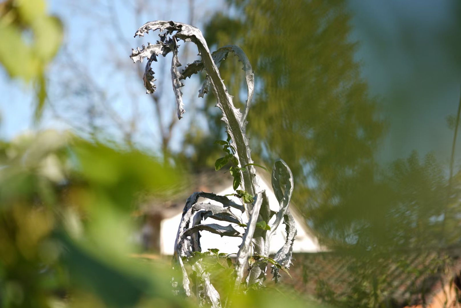 The sculpture "Shadow of Ruins" is situated in Cuiguangyan Village, Xiaonanhai Town, with a collapsed and deserted old house as the base structure, and with the help of weeds and moss crawling all over the walls, it seems that the traces of artificiality are about to be completely submerged in the broken walls, and a plant form with some reflections and metallic texture is about to "grow". The original shape is taken from the wilted plants that the artist has collected and preserved for many years. Due to its unique beauty brought about by its wilting in the humid urban environment, this type of plant, native to the arid desert, has been "transplanted" into this location. The water-depleted plant, like an ancient remnant, reflects the actual remnants of the house. It is a re-reading of an invisible, abandoned thing that serves as a bridge between the past and the future—a replication of memory.