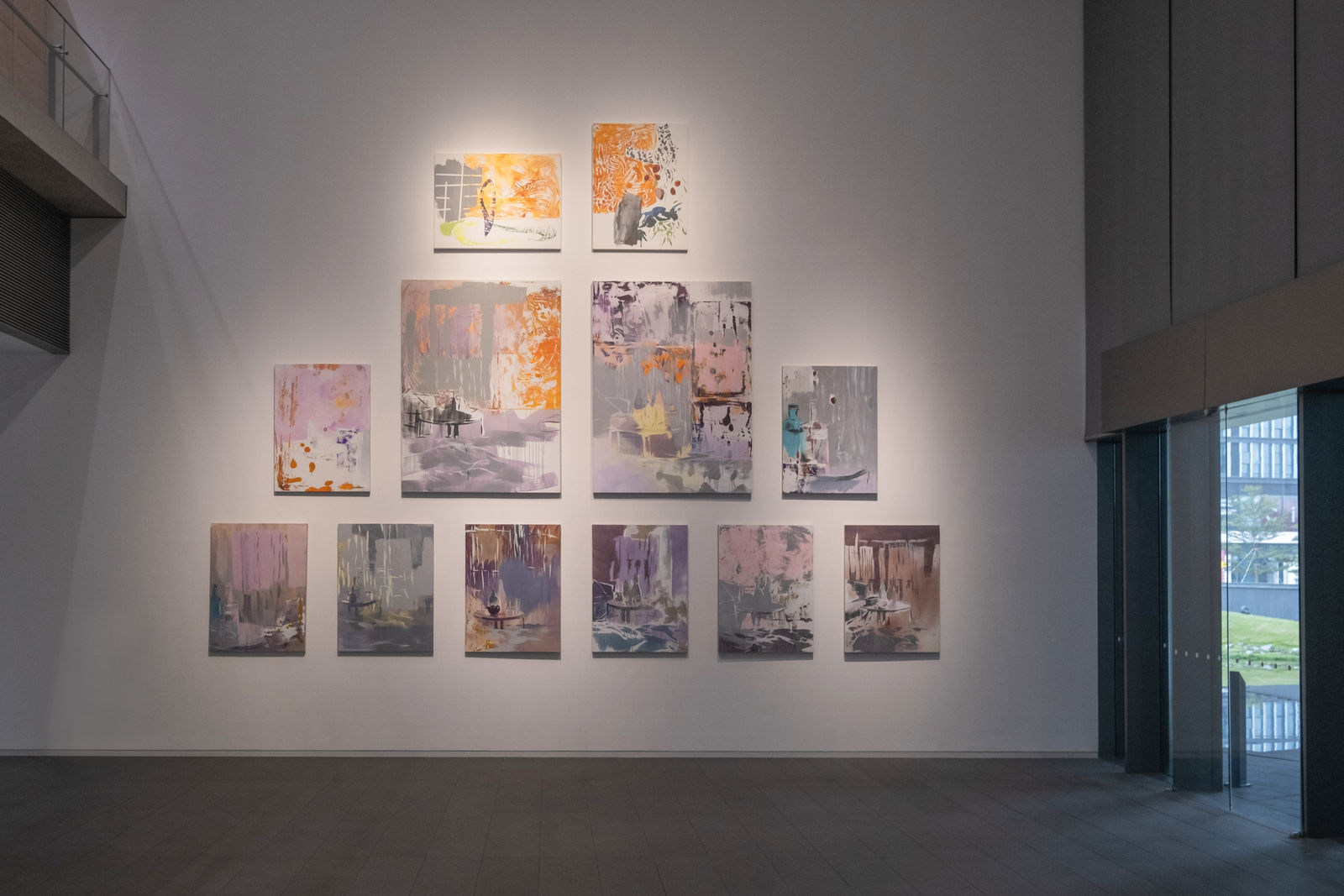 LU Song's "Amos’s Temple" series consists of twelve paintings, divided into three groups according to different stages of creation. The top two paintings were completed during the artist's residency in Sanya, Hainan; the middle two paintings are an extension of the theme and were completed in his Beijing studio; the left, right and bottom eight paintings attempt to escape from the constraints of the theme and the text, and to think and imagine about the current situation from the artist's own experience. The overall arrangement of the three groups of works creates a sense of architecture that echoes the descriptions of the rooms in Tokarczuk's novels, and at the same time responds to the author's typical "constellation novel" style, in which fragmented but related short stories are used to create a complex and varied narrative.